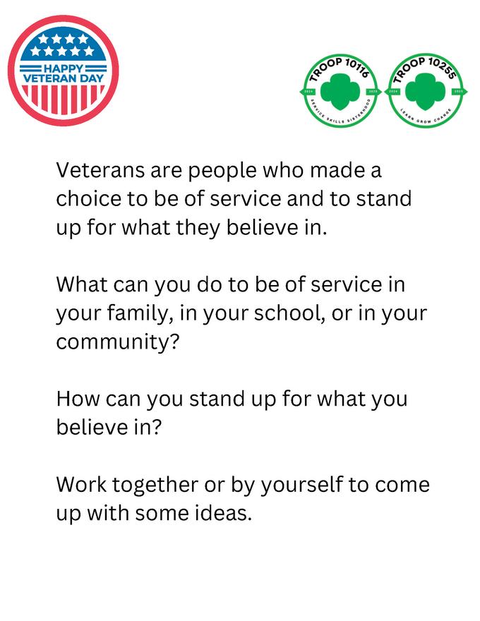 The troop recognized Veteran’s Day by hosting a conversation with Air Force Veteran, Jacklyn Pinera Martin.