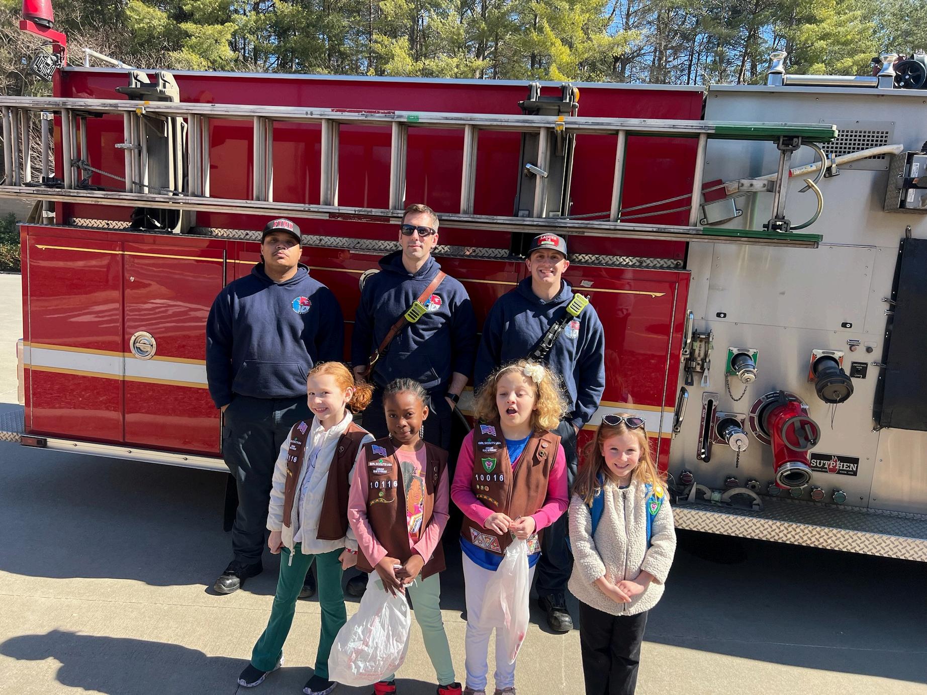 January-February 2025 Girl Scouts offered free packages of cookies to first responders who arrived at Cookie Booth locations and offered lessons and tours of emergency vehicles.