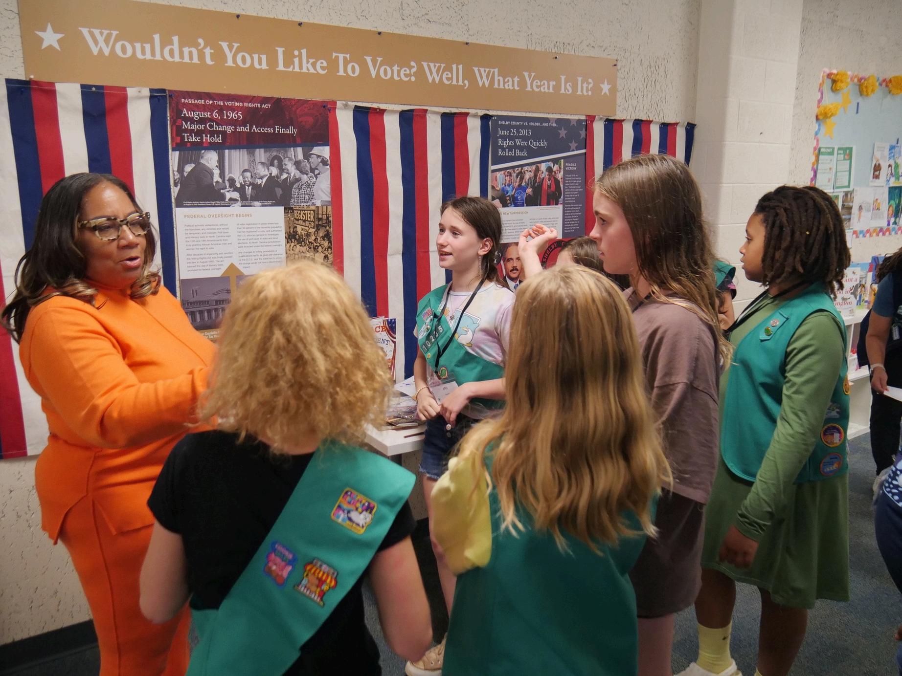 October 2024, Hosted discussion with NC State Representative Dr. Amber Baker. State Representative Baker presented each Girl Scout with official recognition by the state legislature of North Carolina