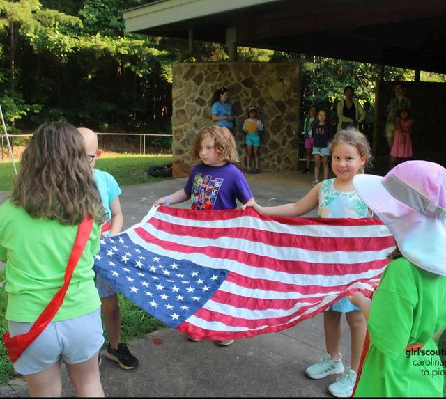 Daisy, Ryann served as part of the color guard during her time at Girl Scout Camp Keyauwee in June 2025.