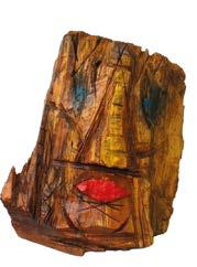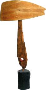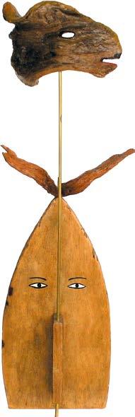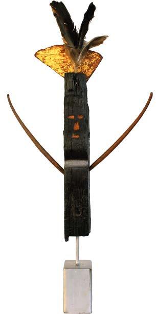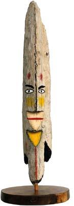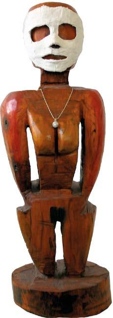 2002 | Holzskulptur bemalt mit Muscheln und Feder ca. 51 cm hoch