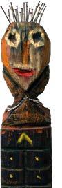 2000 | Holzskulptur bemalt, Nägel und Schmuck ca. 62 cm hoch