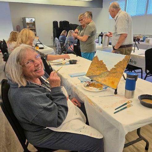 Our painting class in March turned out to be quite an adventure for most of our painters as we tackled landscapes. While there were plenty of moments filled with uncertainty—many saying, “Oh no, I’m not sure I can do this!” everyone ultimately did a fantastic job. Getting out of our comfort zones and trying something new can be challenging, even for Donna and myself, but we were all able to accomplish it together.
