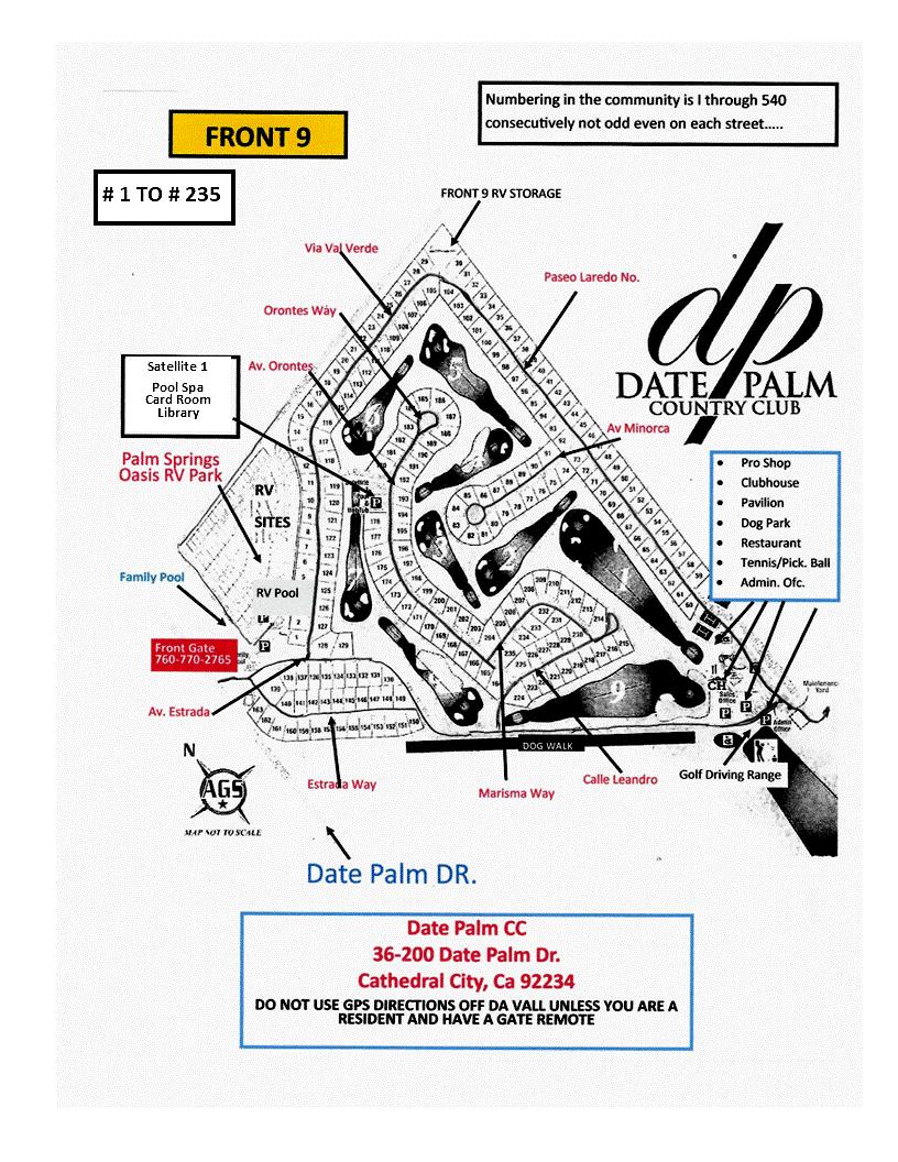 Front Gate: Residents need to call ALL vendors and ALL guests when coming to visit their home on property. Please be aware that all guests and vendors who are not called in to the front gate staff will deny their entry 760-422-7914.