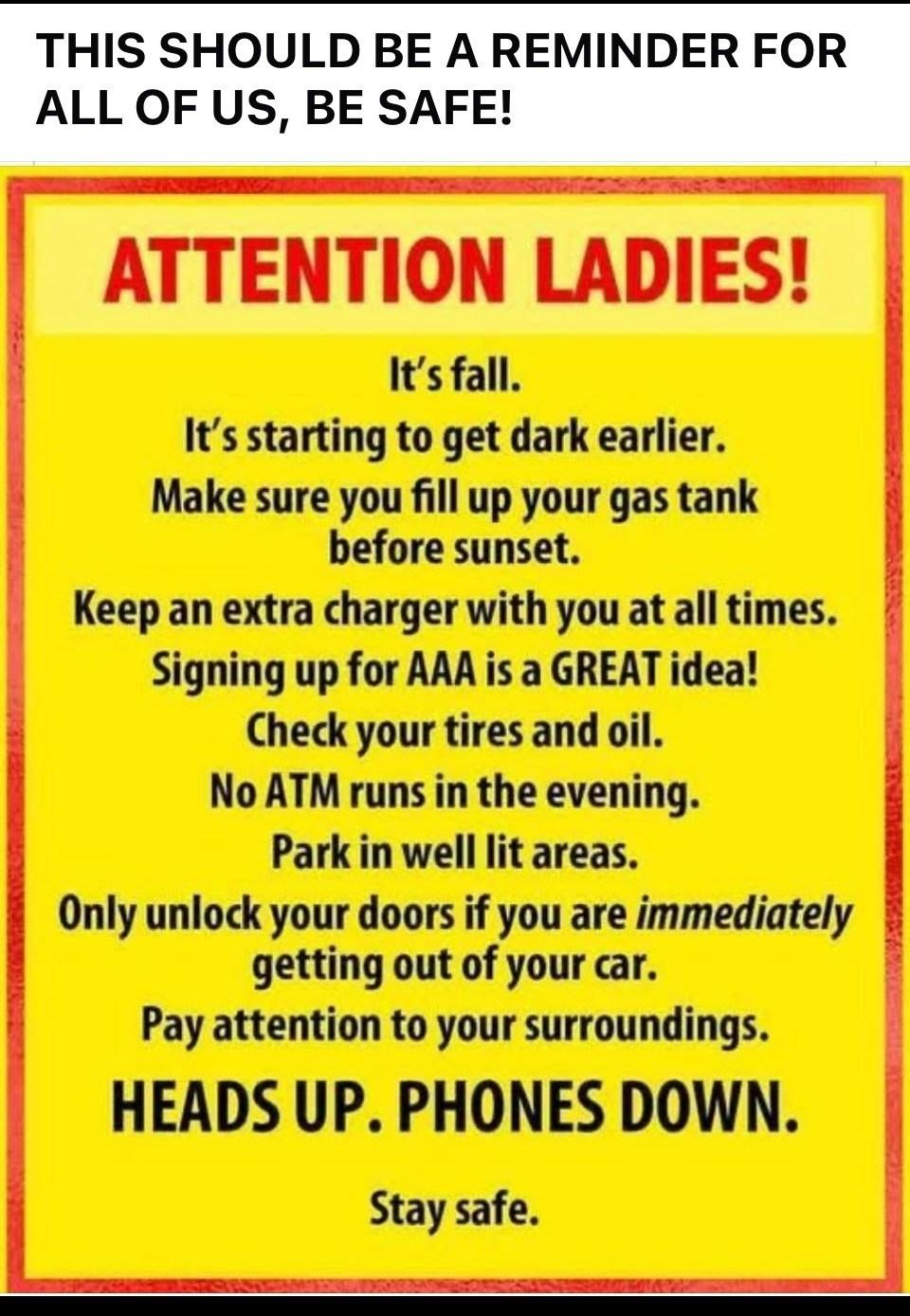 1. Change your driving pattern when leaving and driving: Returning to your home and/or leaving. Drive around the block and always look for cars that might be following you.