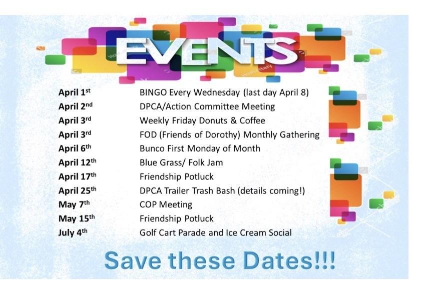 Here’s a few things that you may not KNOW, REMEMBER, UNDERSTAND or need an update on: Date Palm C.C. Organizations, Clubs and Fun Stuff.