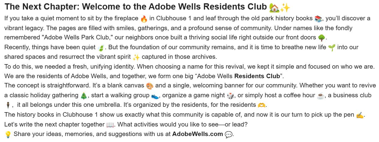 Adobe Wells has more than 600 homes. Our community thrives on neighbor-to-neighbor connection. The challenge? Keeping everyone informed and coordinated. Facebook Groups, WhatsApp, Nextdoor, text messages, and emails have limitations.