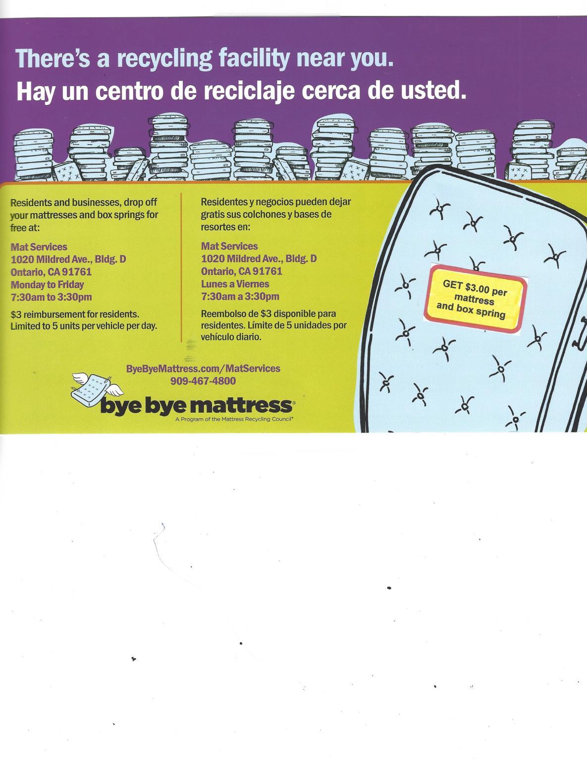 GET PAID FOR DISPOSING OF MATTRESSES and BOX SPRINGS – See page 5 for details.