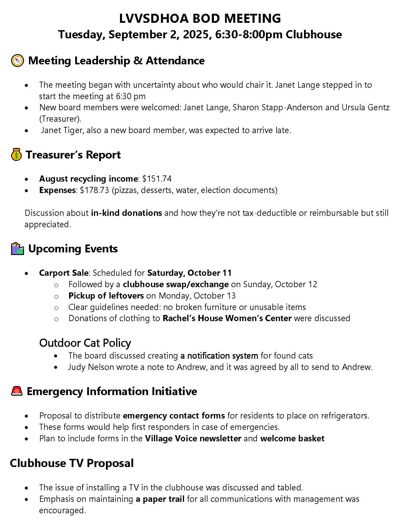 Online: Find and follow us on Facebook (search Facebook for LVVSD Homeowner’s Association) for event announcements, meeting agendas and minutes.
