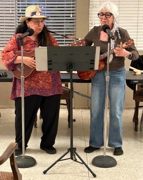 Our monthly club meetings have been informative and fun! We look forward to seeing you atfuture meetings, always on the second Mondayat7:00.OnMonday,March9,ourown ChristyCamarillo and her friend Rosie Ramos delighted us with their singing and ukulele, and banjo playing while sharing a story. They began with “You Ain’t Goin’ Nowhere” by Bob Dylan, a song about waiting for his bride, but the honeymoon is over. Then came “Bye-bye Love” (made famous by the Everly Brothers), followed by “Cuando Caliente El Sol” by Raphael Perez and Carlos Rigaul about a love story of a couple on their beach honeymoon in Hawaii. We were all clapping and singing along with “Shake the Papaya”. They ended with a fun rendition of “Wooly Bully” by Sam the Sham as we sang along. We appreciate that they were willing to share their amazing talents with us in such a fun way!