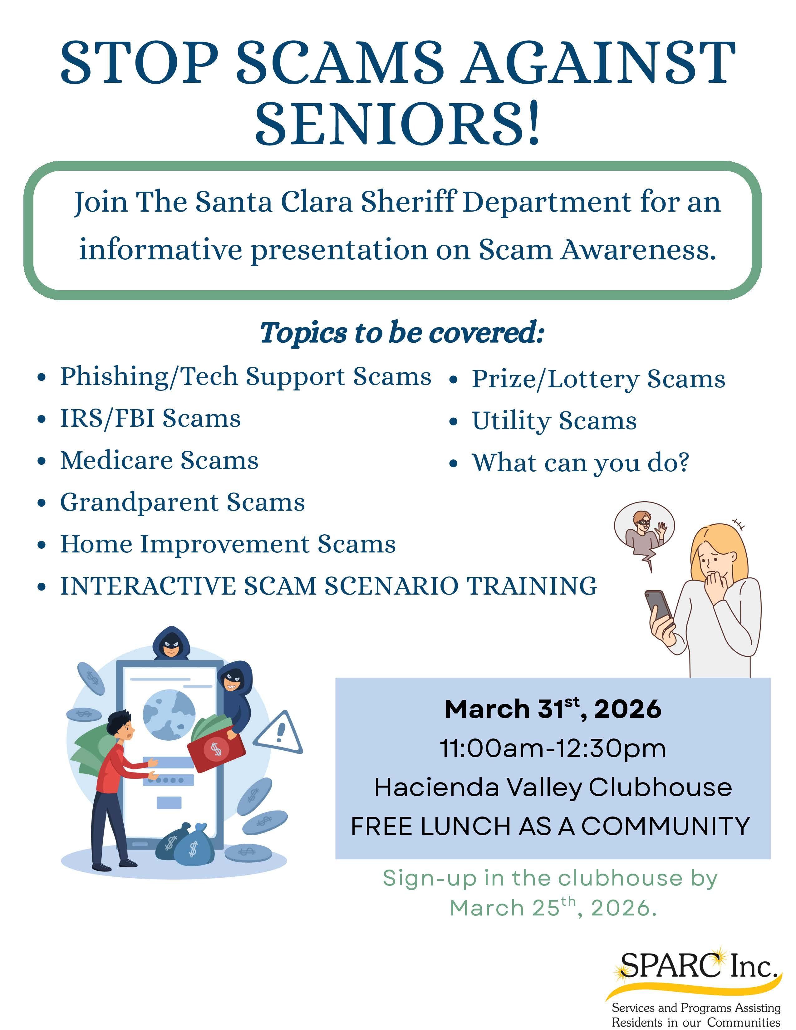 SPARC, our resident services partner, is sponsoring another Scam Seminar on March 31, featurand