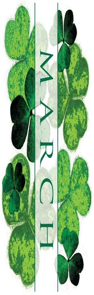 Are you wearing green? Well get it ready because St. Patrick’s Day is on the way! Also, this month we need to SPRING FORWARD Daylight saving is on the way! The official day is March 8th; Sunday. However, we all know that the best way to be on time for church, brunch or other outings on Sunday Morning the 8th, is to set our clocks FORWARD on Saturday night before we go to bed. And, speaking of the word spring Spring is on its way. On the 20th of March, Spring begins.