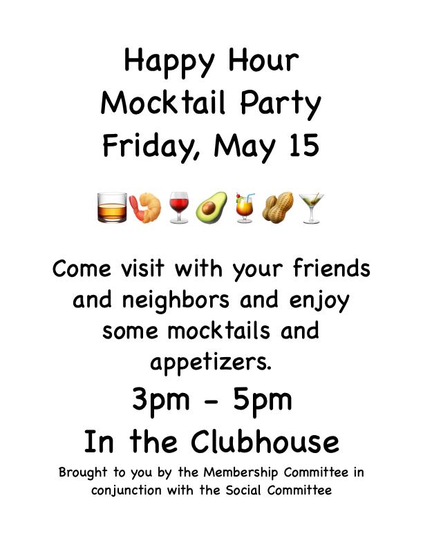 TheMocktailHappyhourwillreturnonFriday,May15from3-5P.MattheClubhouse!!!