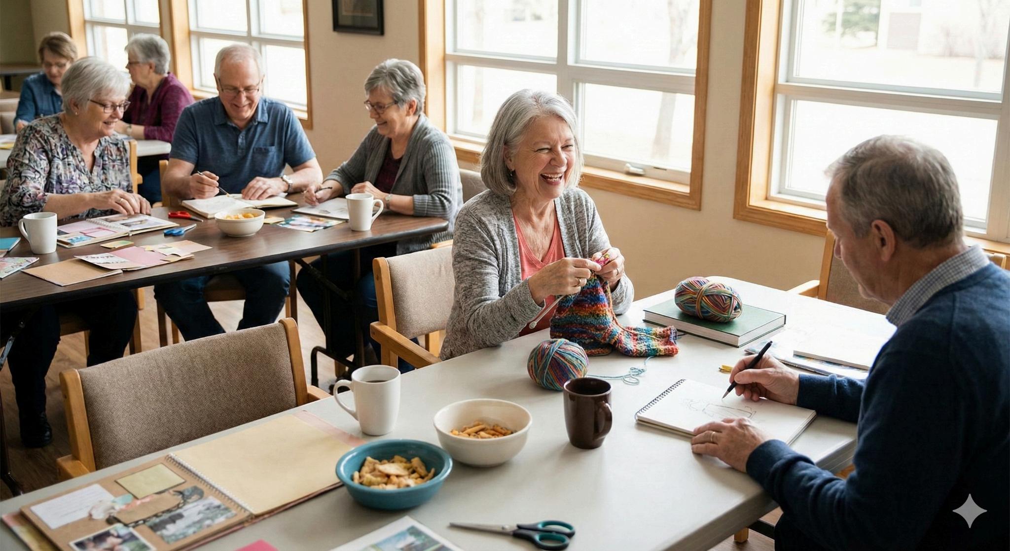 If you peek inside, you won’t find a hushed, serious art studio. Instead, you’ll find one of the liveliest spots in our community the Tuesday Morning Arts & Crafts group.