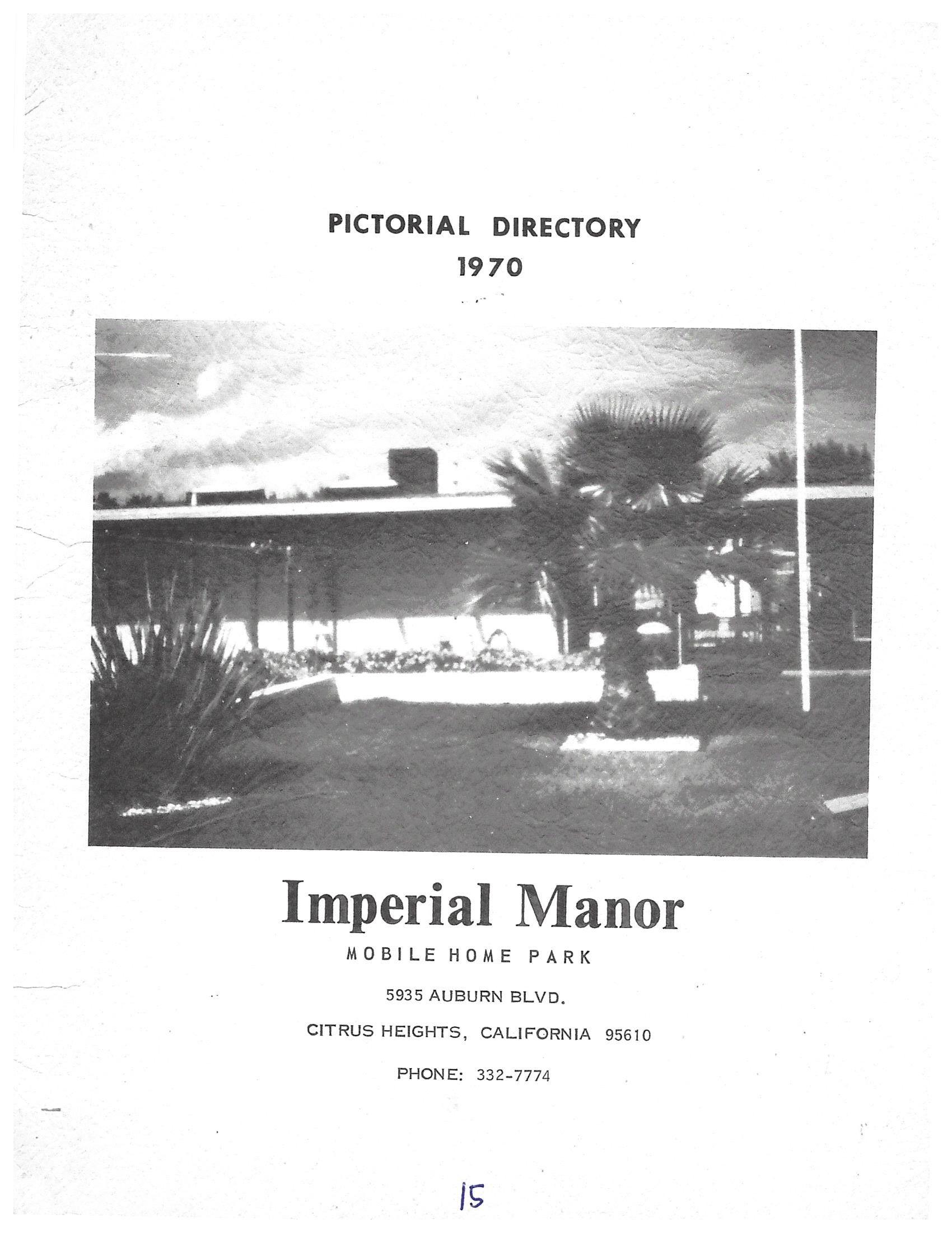 While her sisters were going through some of her saved park information they found some interesting publications. I have included one of them in this month's newsletter, it's a pictorial directory from our park in 1970! I became manager here in 2012 and 3 residents in this directory were still here, Owen King, Bob Lacek and Elsie Jasman!