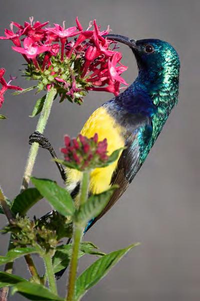There are roughly 1,800 bird species in East Africa, just south of the Equator. Given the regionʼs tropical nature, many of these birds are incredibly colorful, including this male Variable sunbird (Cinnyris venustus).