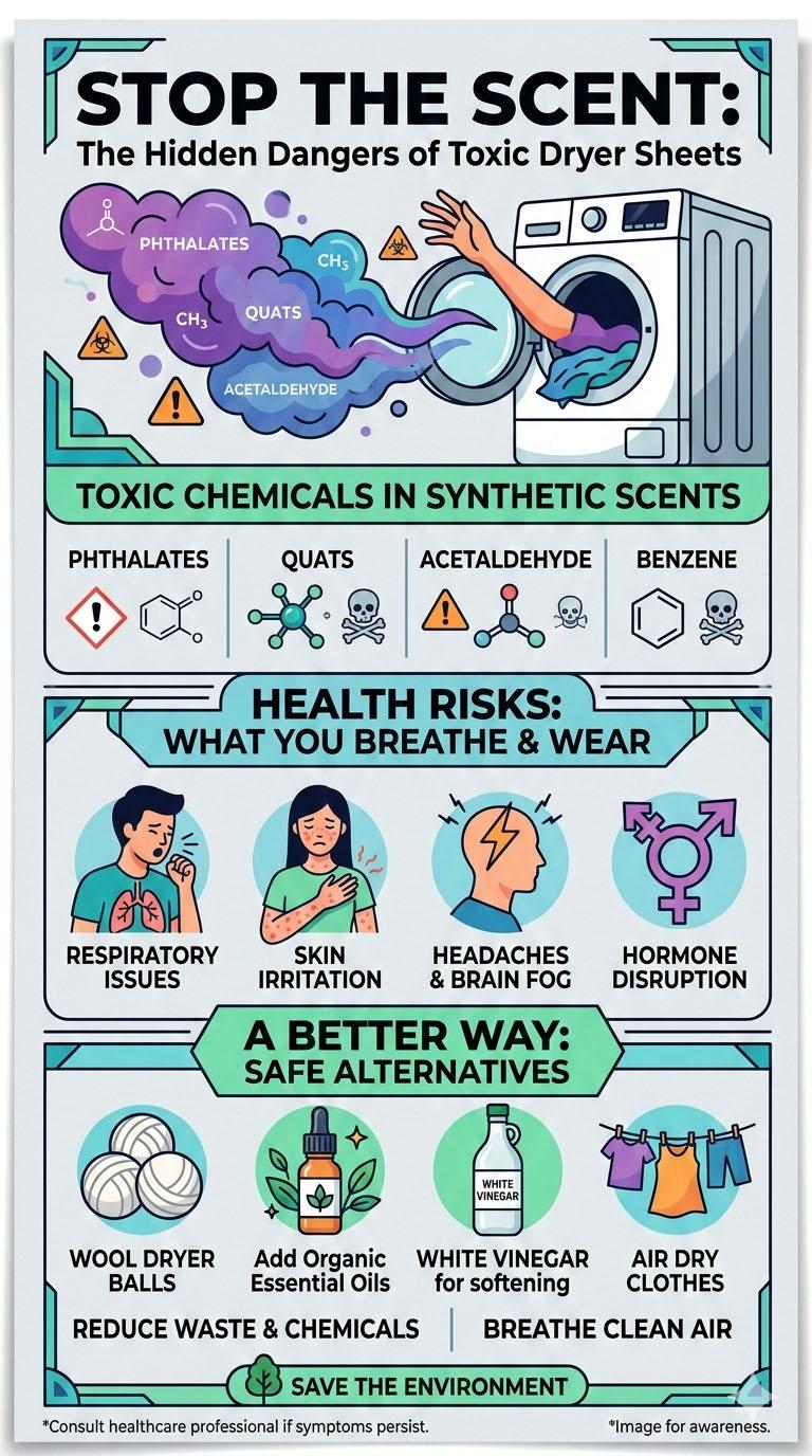 That "fresh linen" or "spring meadow" smell might feel clean, but it’s o en a cocktail of undisclosed chemicals. Tradi onal dryer sheets and liquid fabric so eners are among the most toxic products in the average home.