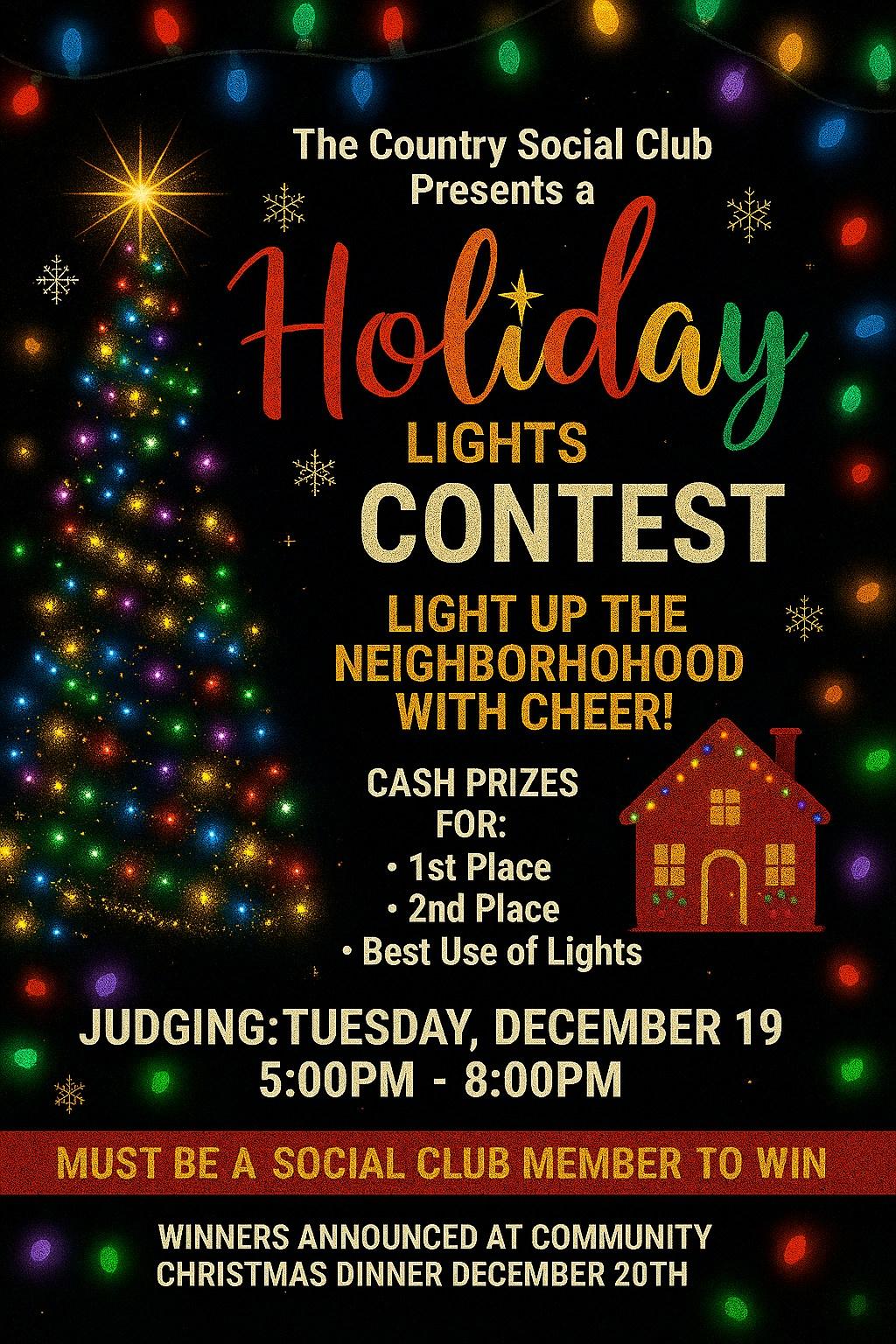 • The annual Holiday Lights contest—judging takes place the evening of December 19th