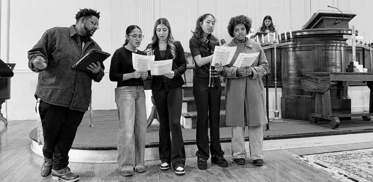 A chorus from St. Mary’s in Lynn, led by the school’s music director, Brandon Mayes, opened the program with a stirring rendition of “Lift Every Voice and Sing,” as the audience joined in. Mayes then spoke — and sang — about the power of Negro spirituals and how they evolved into protest songs during the Civil Rights Movement of the 1960s and ’70s.