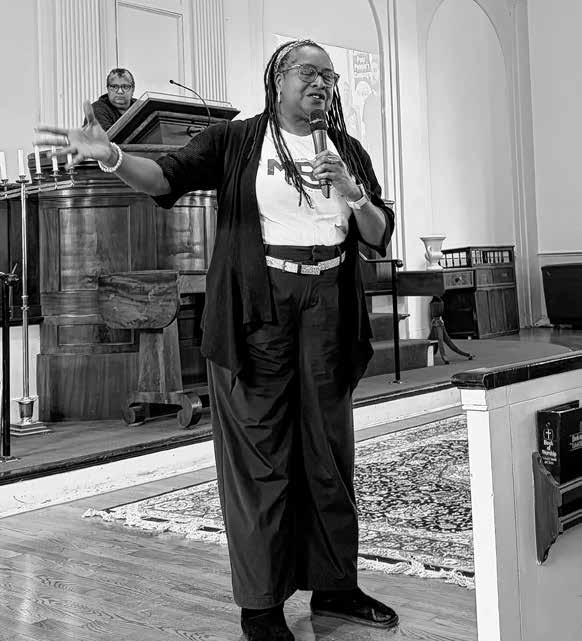 Air Force. He described hearing a restaurant worker use a racial slur and said he regretted not speaking up at the time. He vowed to always call out racism when he sees it now. At the end of the program, MRJT member Donna Cotterrel led the crowd singing the social justice anthem, “We Are a New and Unsettling Force.” Afterwards, attendees traveled to SPUR, where they assembled