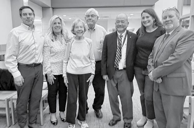 Alex Kulevich (center, back) poses with his family and School Committee members Brian Ota and Sarah Fox and interim Superintendent John Robidoux after the committee voted to name the high school athletic center after the former coach, teacher and athletic director.