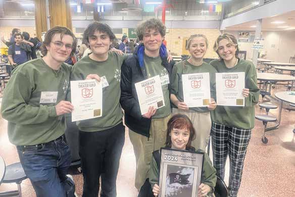 MHS Drama Club students, left to right, Brady Weed, Luke Menslage, Jacob Piascik, Anya Kane and Isabel Scogland display their Drama Festival All-Star awards.