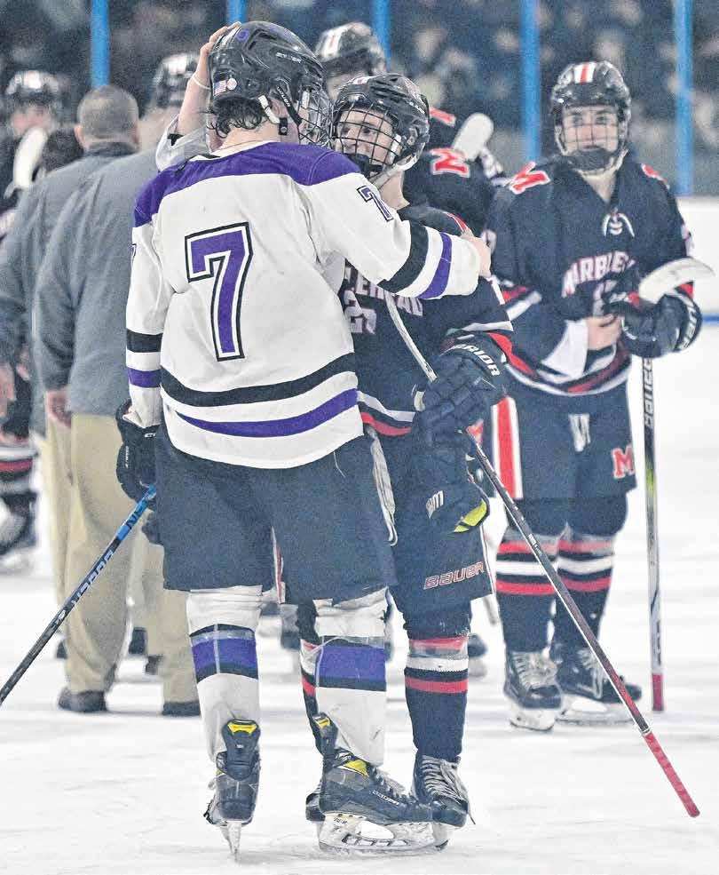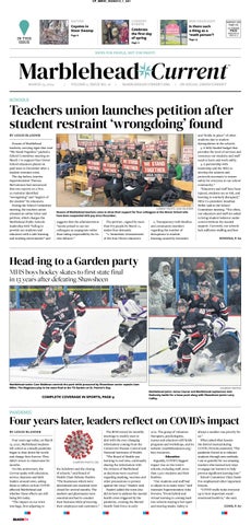 NaTU r E Coyotes in Steer Swamp Page 6 c U rr ENT EVENTS Celebrate the first day of spring Page 11 M h S h E a DLIGh T Is there such a thing as a ‘math person’? Page 15 IN T h IS ISSUE NEWS FOr PEOPLE, NOT FOr PrOFIT. SchOOLS Teachers union launches petition after student restraint ‘wrongdoing’ found CURRENT PHOTO / LEIGH BLANDER Dozens of Marblehead teachers came to show their support for four colleagues at the Glover School who have been suspended with pay since December. Head-ing to a Garden party MHS boys hockey skates to first state final in 13 years after defeating Shawsheen Marblehead senior Cam Waldman controls the puck while pressured by Shawsheen senior captain Liam Milne. The Magicians play in the state fInal at the TD Garden on St. Patrick’s Day. COMPLETE COVERAGE IN SPORTS, PAGE 9 COURTESY PHOTO / CDC COURTESY PHOTOS Marblehead junior James Caeran and Marblehead sophomore Avin Rodovsky battle for a loose puck along with Shawsheen junior Larry Cullity. COVID, P. A7 SCHOOLS, P. A2 CP_MBHC_20240313_1_A01