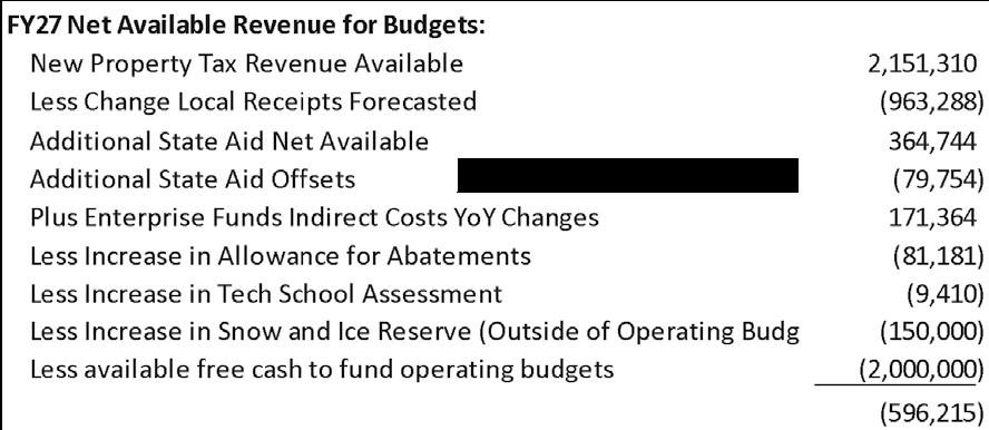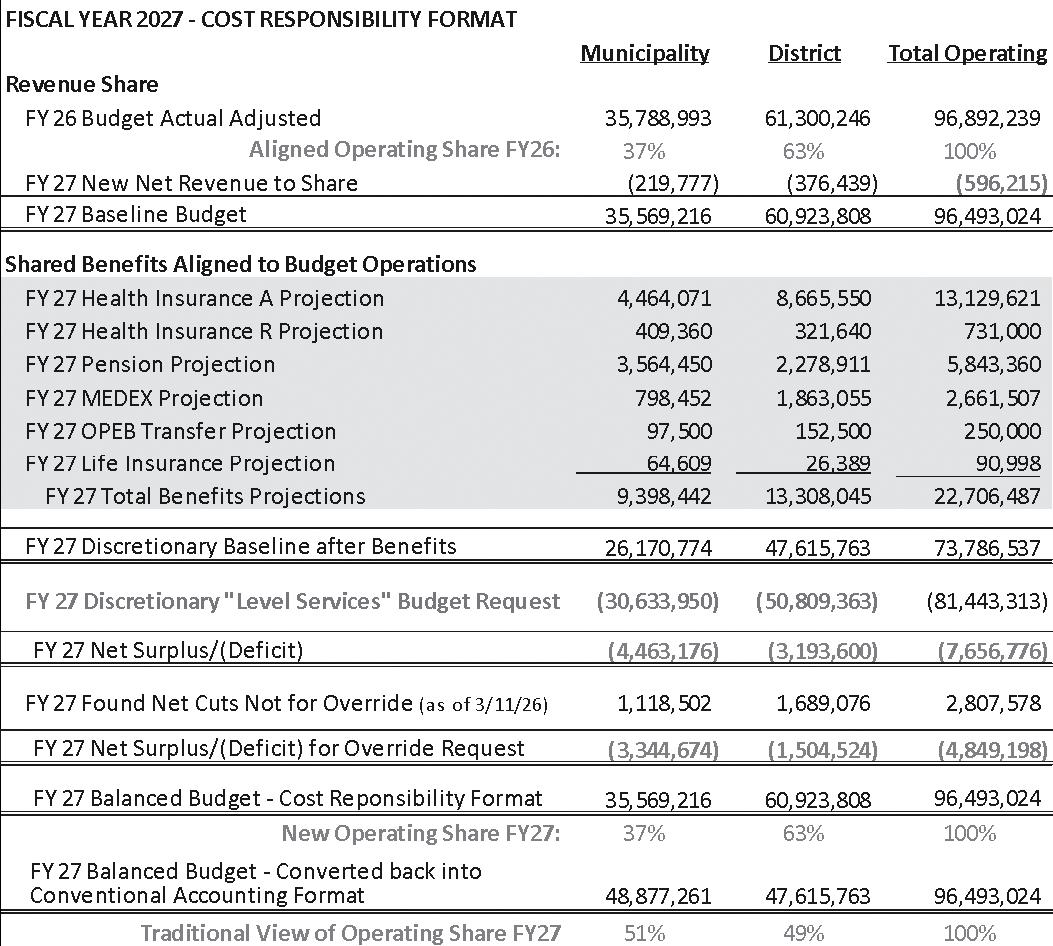 On March 19 at 1 p.m., Town Administrator Thatcher Kezer is expected to update the Select Board after researching three potential override “tiers” to address a $7.7 million deficit for fiscal 2027. The board is also scheduled to vote on a budget that day.