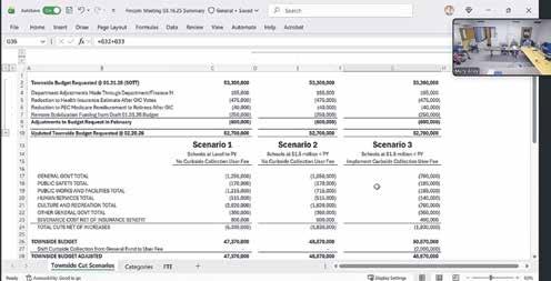 Town Administrator Thatcher Kezer said the goal was to spread cuts broadly rather than eliminate entire services, as outlined in Scenario A, which would lay off roughly 30% of the town’s municipal workforce.