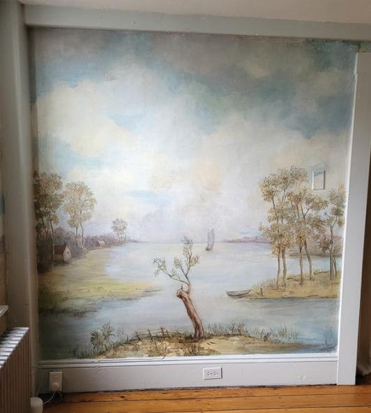 The inn is made up of traditional rooms, each with its own character, with artwork throughout, including paintings by Pyburn’s grandmother, Marilyn Bodwell. The building’s history is visible in details like the third floor, added in the early 1800s, where original spikes connecting the beams can still be seen.