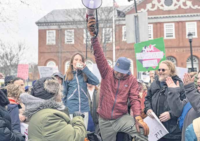 Dozens of Marblehead residents joined hundreds of protesters in Salem Saturday as part of nationwide “Hands Off” demonstration organized to oppose the Trump administration’s policies. The crowd grew so large it had to be moved from City Hall to Riley Plaza, where demonstrators filled the brick-paved area beneath American flags.