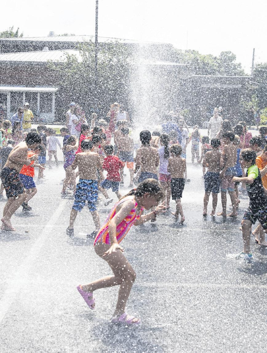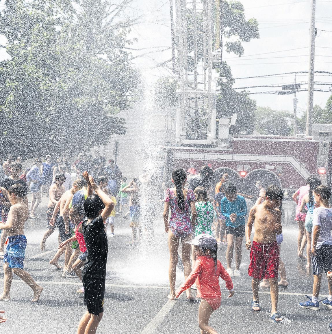 Kids came out on a hot and humid afternoon last Thursday to enjoy a summer splash courtesy of the Marblehead Fire Department. MFD brought its ladder truck to the Community Center parking lot and rained water from a fire hose down on the crowd below. Photographer Grey Collins captured the kids’ joy.