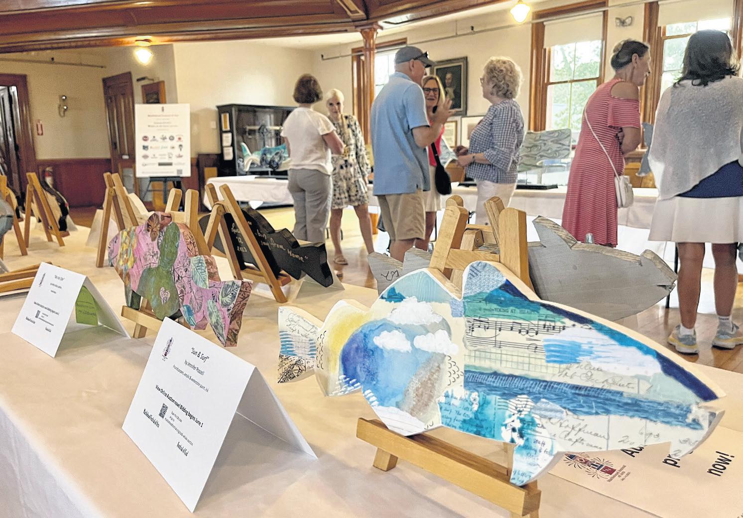 The MFoA invites artists from around Essex County to create a work of art from a blank wooden cod or whale, or they can opt to freestyle the piece’s medium. After receiving their blank pieces, artists have around six weeks to create before their works are displayed at Abbot Hall, which happened May 31. Then they’re sent to retailers around town and auctioned off.