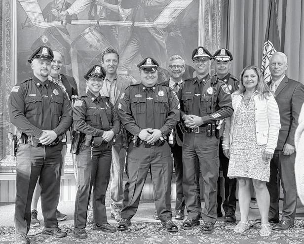 Two new officers, Taylor Nolasco and Christian Hennigar, were officially welcomed. Both recently completed their field training and are assigned to the Patrol Division. In addition, two promotions were recognized. Andrew Dimare was promoted to sergeant, and Eric Osattin advanced to lieutenant.