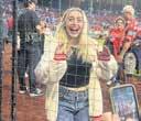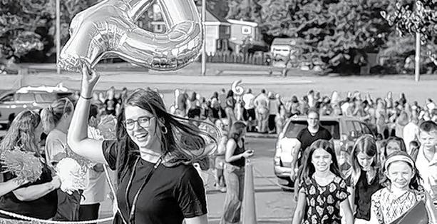 English teacher Kristina Sholds, who was wearing a red T-shirt that announced this is her 29th year teaching in town.