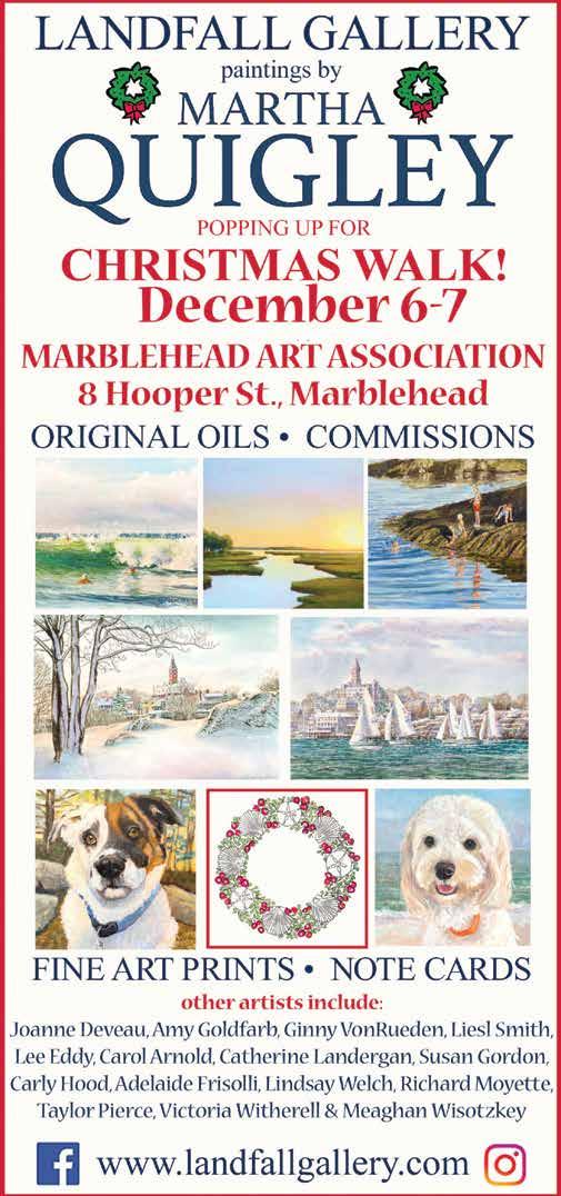 Saturday, Dec. 6: 9 a.m., Santa and Mrs. Claus arrive at State Street Landing; 11:45 a.m., parade begins on State Street Sunday, Dec. 7: Events, shopping throughout town Find the Christmas Walk’s full schedule on pages 4-5. For more information, visit marbleheadchamber.org.