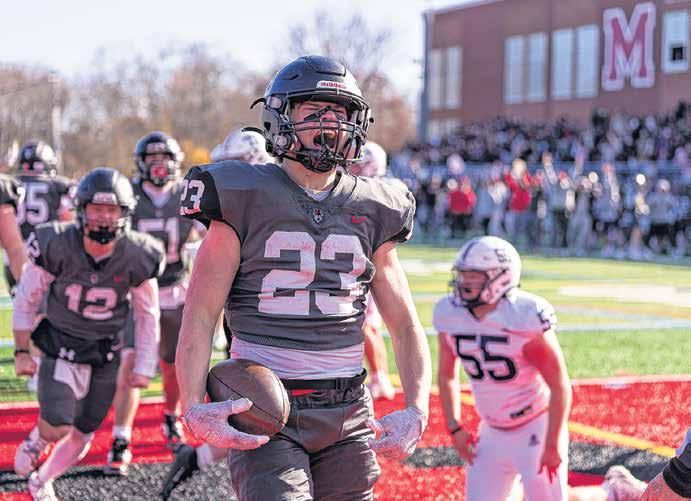 Marblehead’s James Machado celebrates after scoring the game winning touchdown in the 116th Thanksgiving morning game between Marblehead and Swampscott at Piper Field.