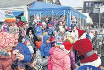 Holiday magic arrived in Marblehead Harbor Saturday morning as the Sea Hooker, carrying Santa and Mrs. Claus, zigzagged through the water before docking at Clark’s Landing where a sea of happy children and families awaited their arrival.