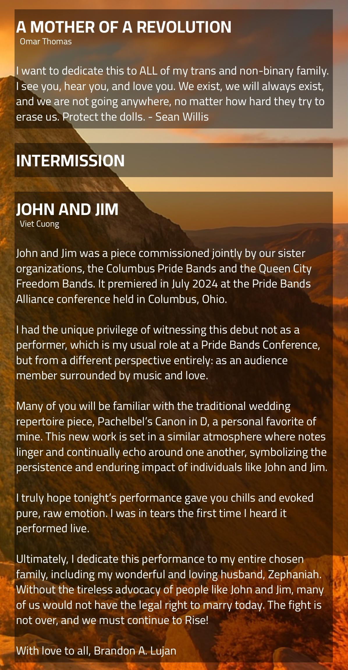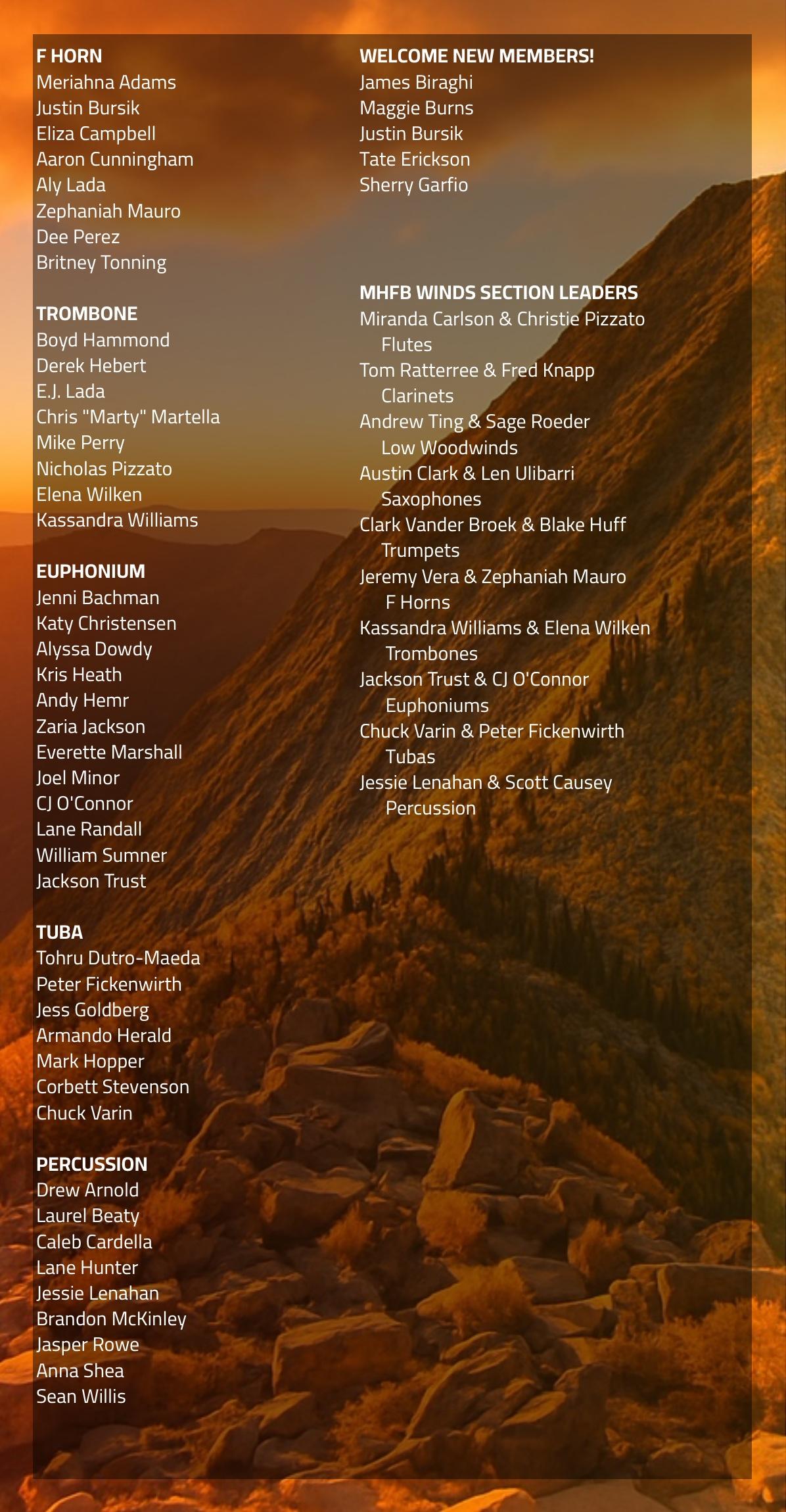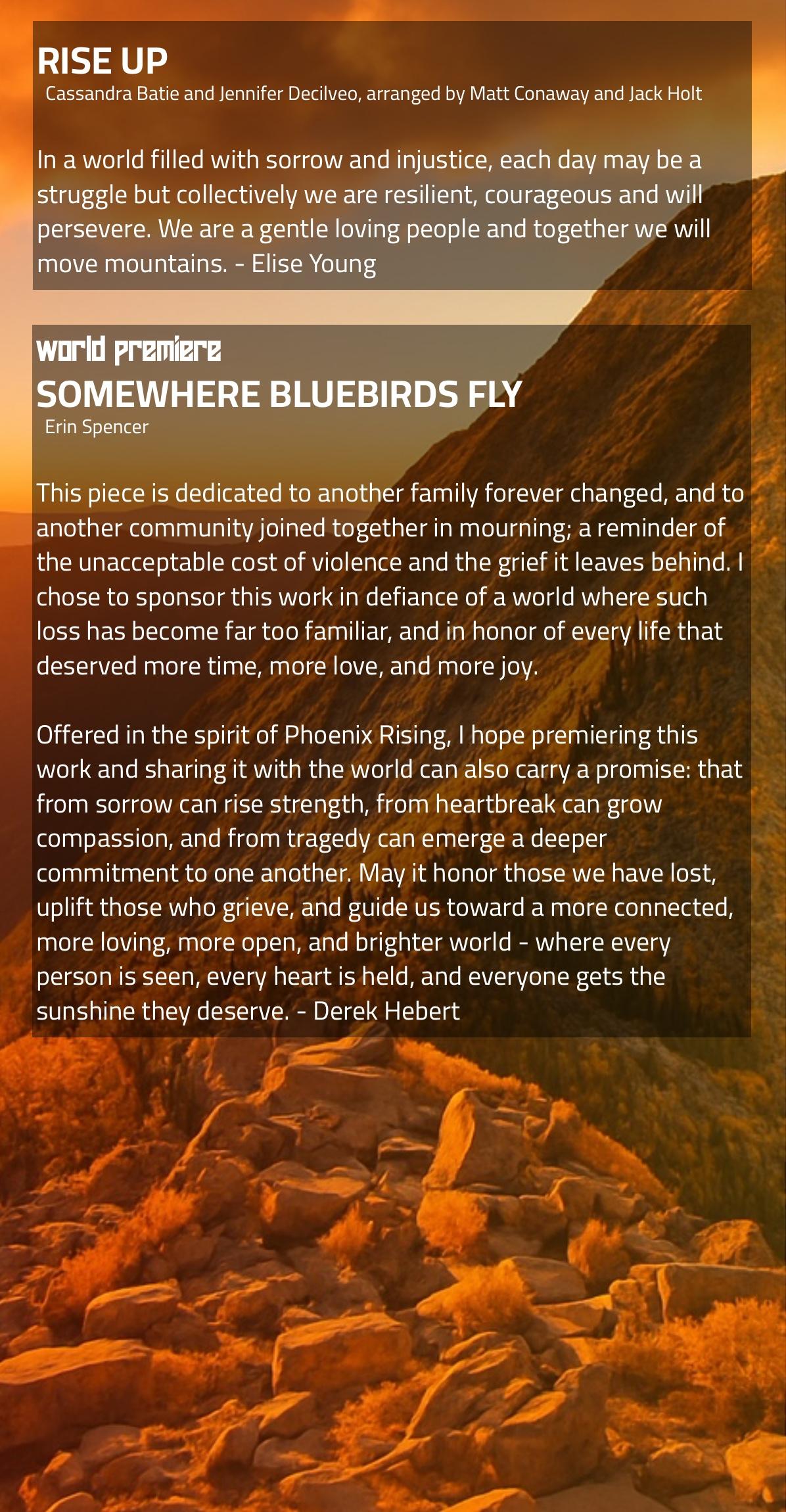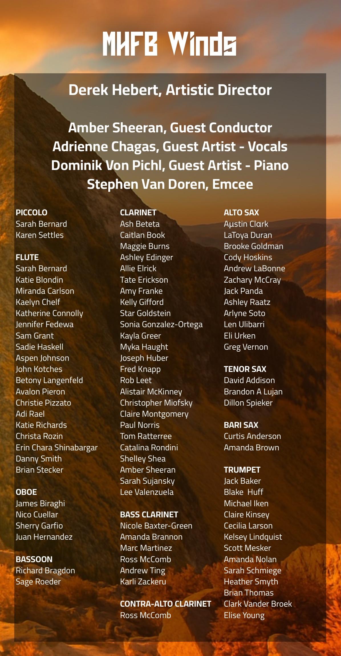 Out of the ashes of despair comes a blazing triumph. Phoenix Rising is more than a concert - it’s a declaration of the human spirit’s resilience. In a world that often feels weighed down by challenges, hatred, and injustice, MHFB Winds presents a transformative program that channels our collective strength to rise above it all. Through bold melodies and sweeping harmonies, this performance tells the story of rebirth: how even in our darkest moments, we find the courage to rebuild, grow stronger, and soar higher than ever before. This concert captures the raw emotion of struggle and the radiant power of renewal. Join us for an unforgettable evening that reminds us of the strength we hold within ourselves and as a united community. Together, we rise from the ashes - better, bolder, and brighter than ever before.