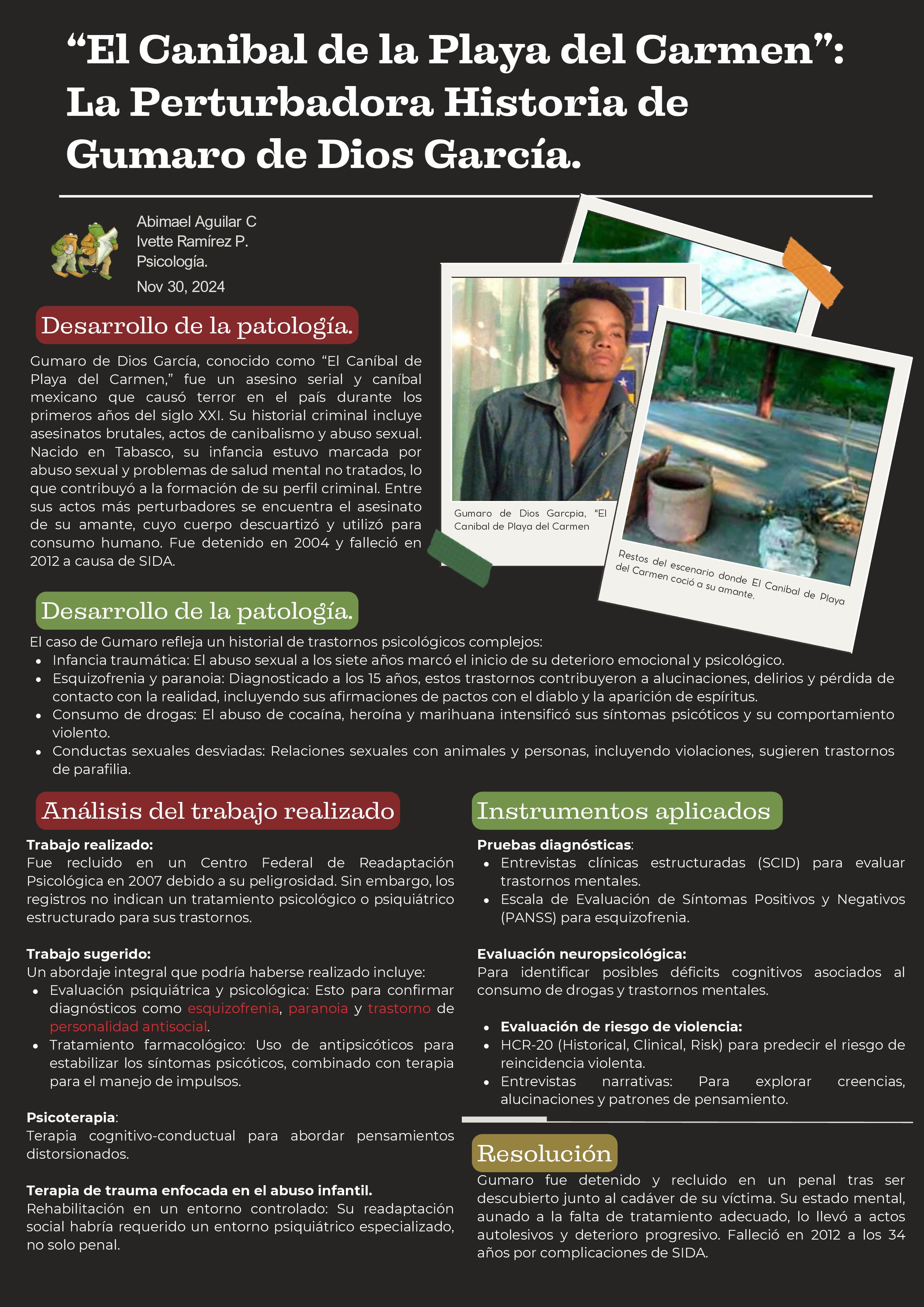 Jeffrey Dahmer fue un asesino en serie estadounidense que cometió múltiples homicidios, en su mayoría entre 1978 y 1991. Su caso es uno de los más notorios en la historia criminal de Estados Unidos debido a la brutalidad y los detalles perturbadores de sus crímenes. Dahmer fue arrestado en 1991 en Milwaukee, Wisconsin, y confesó haber asesinado a 17 hombres y jóvenes. La mayoría de sus víctimas eran personas jóvenes, muchas de minorías étnicas, y los crímenes incluyeron actos de violencia extrema, desmembramiento, necrofilia y canibalismo.