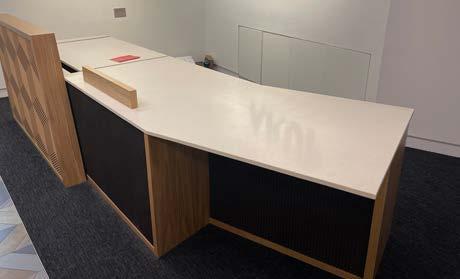 Including a wall water feature with bamboo inspired honed Quartz not only adds sounds of serenity to the intimate dining area of the BBQ building, it creates an intriguing interest as the wall only comes to life once water starts to flow. This water feature has one material but the clever choice of finish changes how it reacts when touched by water hence bringing it to life.