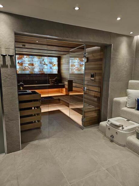The sauna is a pivotal room in this complex where our research lead us to ensure Himalayan salt blocks and natural sustainably sourced Cedar wood is used. This allowed us to deliver a space that not only enhances our client’s health and wellbeing, it also allows them to fully enjoy the relaxing aroma the Cedar wood provides.