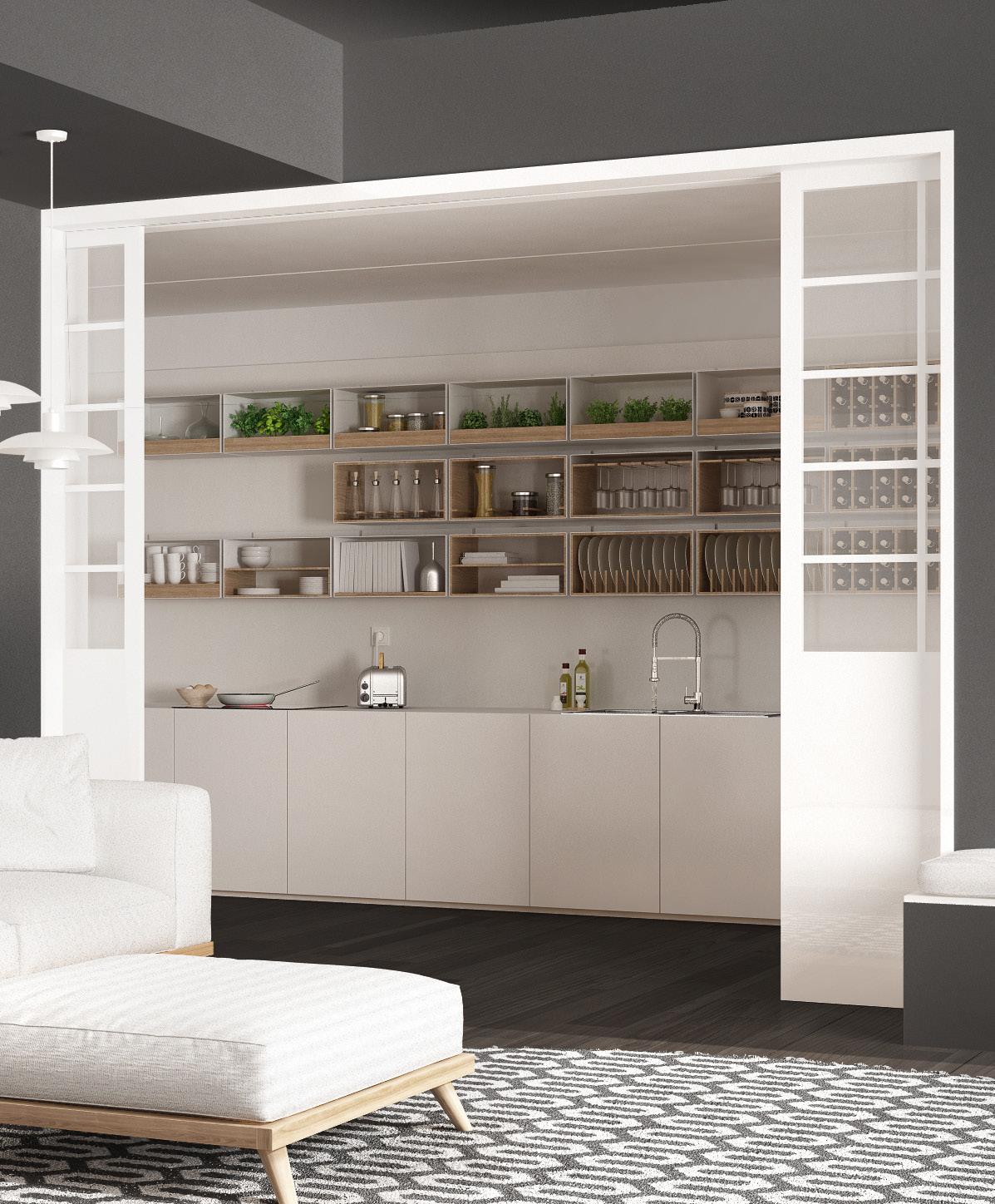 "Collinson embraces classic English craft and understated luxury with its freestanding kitchen and shelving unit"