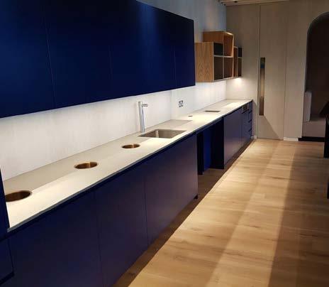 The smooth easy to clean ecorock surface is a great help to keep surfaces hygienic and in double quick time. Installation of the wall panels are much faster than tiles and is being highlighted as another sustainable break through. Colours can be a match to the worksurfaces or a contrast, check out the Ral colour charts. We can even create some interesting lines and shapes to liven up the design.