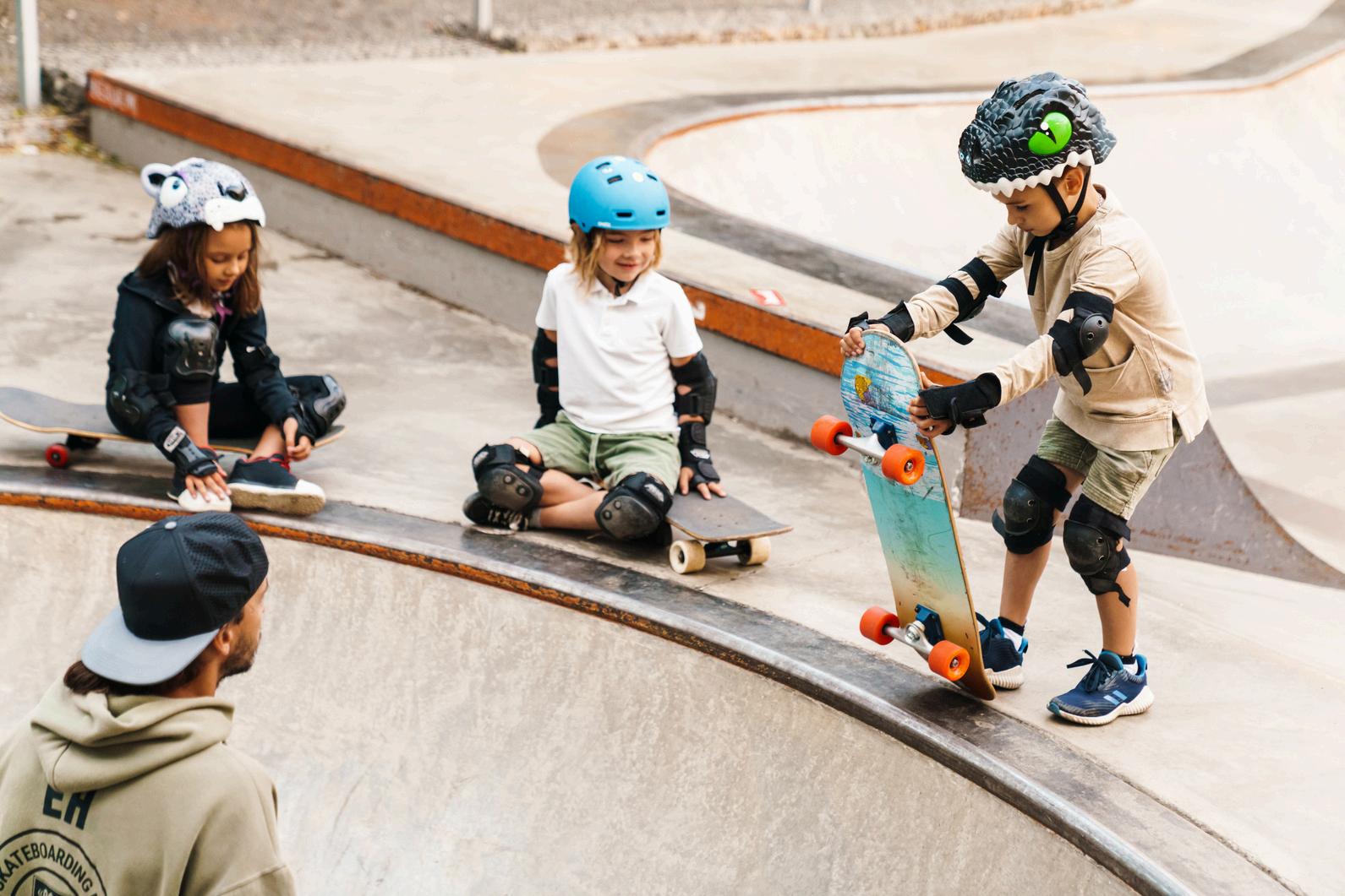 Beginner lessons will start off slowly, allowing students to get comfortable with their skateboards as well as the skatepark Students are introduced to entry level skateboarding skills and tricks, and will build and develop their skills from there. Participants will learn basic skateboarding fundamental in order to go from never having ridden a skateboard, to safely cruising around the skatepark.