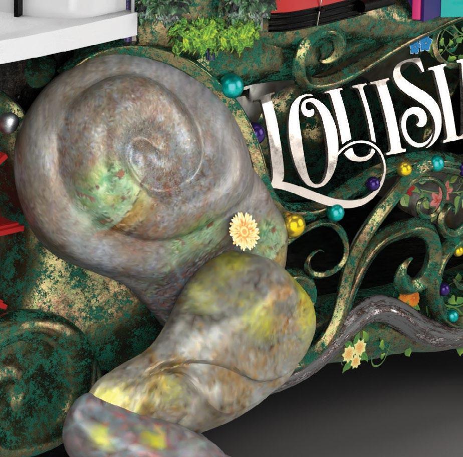 Working directly with the Head Designer (Joey Ammons) I had the chance to participate in the entire parade float design process from first sketches to production, including both internal and partner meetings with the Louisiana Office of Tourism. The impressive float is topped with a New Orleans-inspired performance stage which I modelled entirely in Rhino 7. The design incorporates iconic French Quarter wrought-iron architecture, a steamboat stern-wheel, and bald cypresses from the bayou to create a festive creature with its roots in the region. The alligator appears to have crawled out of the swamp, picking up the cultural totems of its home state on its journey to New York City. The Celebration Gator featured prominently in the 2022 Macy's Thanksgiving Day Parade, accompanied by a performance from Oscar winning and 14-time Grammynominated musician Jon Batiste.