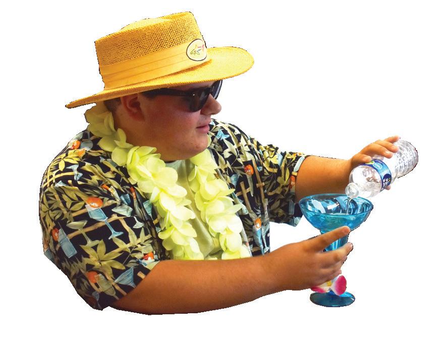 CHEESEBURGER IN PARADISE Pouring more water into his margarita glass during lunch, Michael Burzynski, senior, dressed as Jimmy Buffet—complete with Jimmy Buffet Crocs—for senior random costume day on Tuesday.