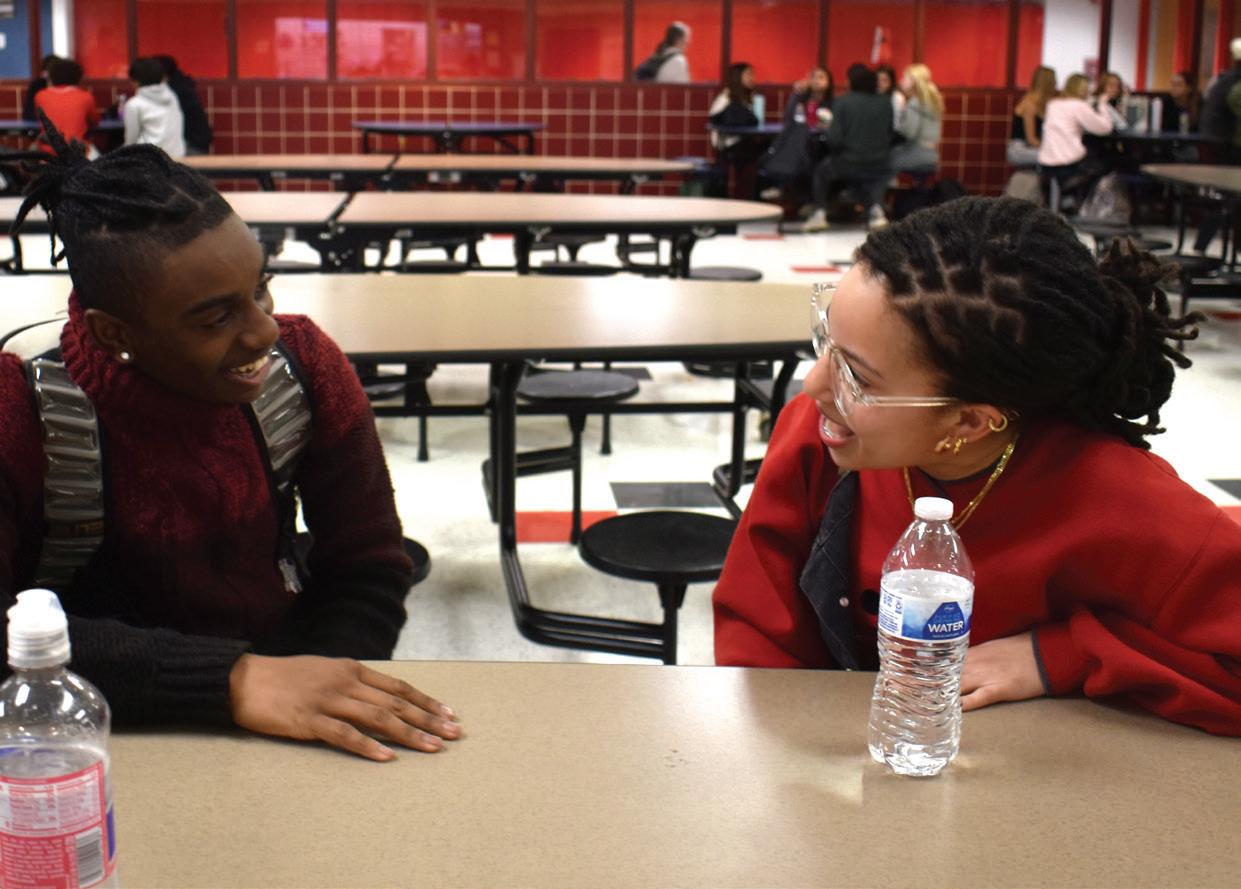 by josephine zangrilli) CHATTING IT UP Sitting at her desk, Jordin Ford, sophomore, talks to her classmate during Mr. Jordan Mayer’s English class Feb. 9.