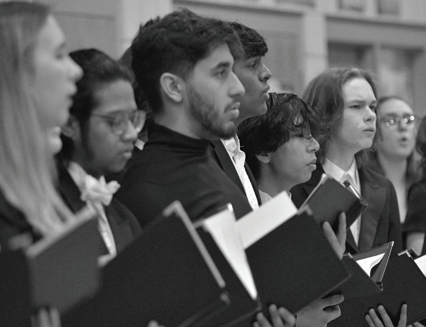 DO-RE-MI Seen with their choir books, seniors Elias Sabat, Cristian Silva and Josh Serrano, junior Philip Ossowski and senior Rowan Danis, sing. Last Tuesday, Munster Chorale visited three elementary schools to recruit new members.