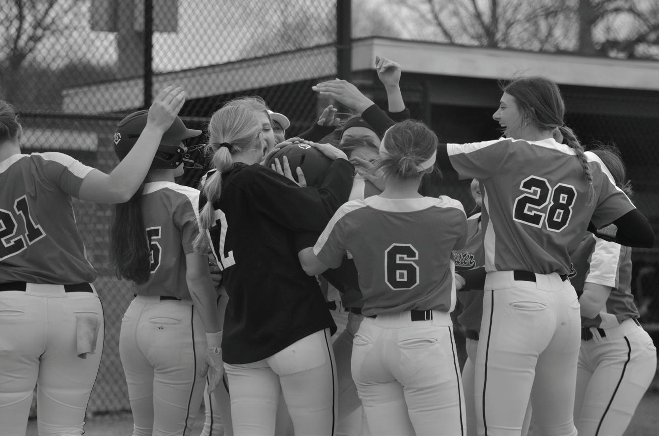 HIP HIP HOORAY After winning their match, the Girls’ Softball team cheers together. The team was up against Lowell, and winning the match brought their overall record up to 6-4. (photo by viv rodriguez)